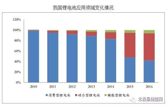 中國儲(chǔ)能網(wǎng)訊:鋰電池按照下游應(yīng)用領(lǐng)域主要分為消費(fèi)型鋰離子電池、動(dòng)力型鋰離子電池和儲(chǔ)能型鋰離子電池。2015年之前我國鋰電池市場(chǎng)主要以消費(fèi)型鋰電池為主,并占據(jù)絕對(duì)主導(dǎo)地位。2015年開始,我國鋰電池產(chǎn)業(yè)結(jié)構(gòu)出現(xiàn)顯著變化,動(dòng)力型鋰電池需求迅猛增長(zhǎng),2016年動(dòng)力型鋰電池市場(chǎng)占比達(dá)到52%,首次突破50%并超過消費(fèi)型鋰電池,而2015年僅為47%;消費(fèi)型鋰離子電池市場(chǎng)占比持續(xù)下滑,2016年約為42%,2014年和2015年這一占比還分別為83%和48%;儲(chǔ)能型鋰電池在光伏分布式應(yīng)用和移動(dòng)通信基站儲(chǔ)能電池領(lǐng)域的應(yīng)用不斷擴(kuò)大,2016年占比達(dá)到6%。