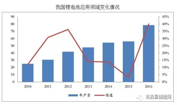 在動(dòng)力鋰電池的帶動(dòng)下,2016年我國鋰電池產(chǎn)量再次呈現(xiàn)高速增長(zhǎng)態(tài)勢(shì)。根據(jù)國家統(tǒng)計(jì)局?jǐn)?shù)據(jù)顯示,2016年我國鋰電池累計(jì)產(chǎn)量達(dá)到78.4億只,同比增長(zhǎng)40%,增速創(chuàng)下2010年以來的新高。2016年我國鋰電池產(chǎn)業(yè)規(guī)模達(dá)到1280億元,首次突破1000億元,同比增長(zhǎng)30%,繼續(xù)保持了高速增長(zhǎng)態(tài)勢(shì)。2016年我國占全球鋰電池產(chǎn)業(yè)的比例達(dá)到40%,較2015年提升了5%。