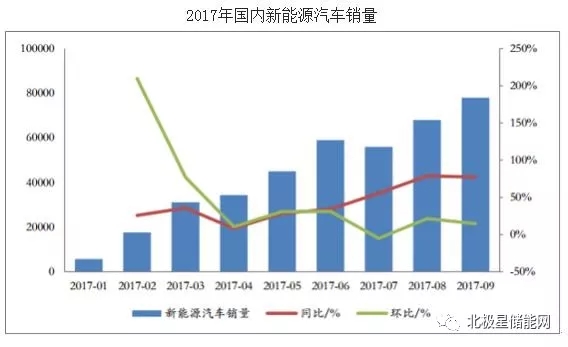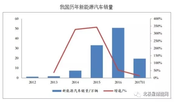 從2015年起我國新能源汽車進(jìn)入快速發(fā)展期,各項(xiàng)產(chǎn)業(yè)政策和資本運(yùn)作層出不窮,2016年我國新能源汽車銷量達(dá)到50.7萬輛,較2012年的1.3萬輛,增長(zhǎng)了近40倍。2016年底,財(cái)政部、科技部、工信部和發(fā)改委聯(lián)合發(fā)布《關(guān)于調(diào)整新能源汽車推廣應(yīng)用財(cái)政補(bǔ)貼政策的通知》,對(duì)新能源汽車不提方式進(jìn)行了調(diào)整細(xì)化,并適度降低了補(bǔ)貼力度。2017年1月,工信部發(fā)布了《新能源汽車生產(chǎn)企業(yè)及產(chǎn)品準(zhǔn)入管理規(guī)定》。2017年3月,財(cái)政部聯(lián)合相關(guān)部委印發(fā)了《關(guān)于開展2016年新能源汽車補(bǔ)貼》,再次調(diào)整了新能源汽車的推廣措施。雖然新的補(bǔ)貼政策造成了補(bǔ)貼滑坡,影響了年初的新能源汽車銷量。但隨著新能源汽車推薦目錄重新發(fā)布、地方補(bǔ)貼政策陸續(xù)出臺(tái)以及雙積分政策的落地,新能源汽車銷量回暖,2017年前九個(gè)月國內(nèi)新能源汽車銷量累計(jì)達(dá)到39.8萬輛,同比增長(zhǎng)37.72%。新能源汽車產(chǎn)業(yè)逐漸度過陣痛期,朝著健康長(zhǎng)期的方向文件發(fā)展,繼續(xù)維持高速增長(zhǎng)。