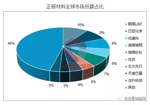 目前,鋰電池正極材料呈現(xiàn)中、日、韓“寡頭聚集”的格局。日韓的鋰電正極材料產(chǎn)業(yè)起步早,整體技術(shù)水平和質(zhì)量?jī)?yōu)于我國鋰電正極材料產(chǎn)業(yè),占據(jù)鋰電正極材料市場(chǎng)高端領(lǐng)域。近十年我國大型鋰電正極材料迅速發(fā)展,產(chǎn)品質(zhì)量大幅提高,具備較強(qiáng)的成本優(yōu)勢(shì),日韓鋰電企業(yè)逐步從我國進(jìn)口鋰電正極材料,目前我國市場(chǎng)份額已占據(jù)全球的46%,未來發(fā)展空間仍廣闊。