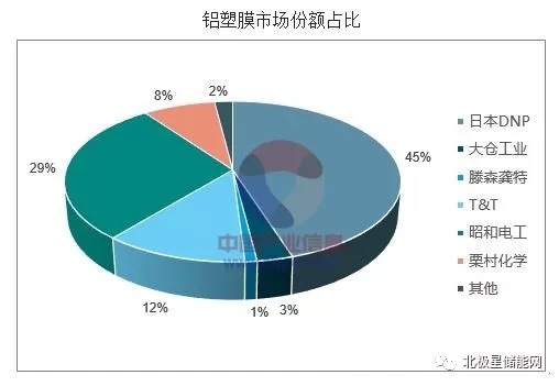 2016年中國鋰電池鋁塑膜的需求量(不含外資企業(yè)在中國的工廠,ATL除外)為9500萬平方米,同比增長(zhǎng)44%;市場(chǎng)規(guī)模為29.5億元,同比增長(zhǎng)39.1%。2016年軟包數(shù)碼電池產(chǎn)值占總數(shù)碼產(chǎn)值的比例從2015年的56%上升到68%;動(dòng)力軟包電池開始逐步放量,預(yù)計(jì)2017年軟包動(dòng)力電池產(chǎn)值同比增長(zhǎng)超過30%。據(jù)高工鋰電統(tǒng)計(jì),我國目前全部鋰電材料中已約有74%實(shí)現(xiàn)國產(chǎn)化,而與之相對(duì)的,國內(nèi)企業(yè)生產(chǎn)的鋁塑膜卻僅占總量的7%-8%,其余絕大多數(shù)依賴進(jìn)口,國內(nèi)市場(chǎng)份額幾乎完全被日本DNP、日本昭和電工、日本T&T和韓國栗村化學(xué)四家企業(yè)瓜分。