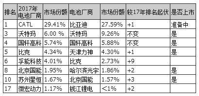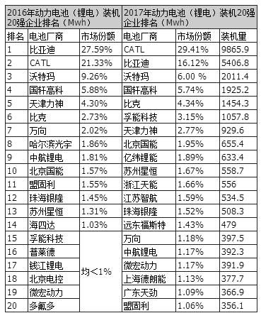 與2016年相比較,2017年鋰電池企業(yè)裝機(jī)總量增長(zhǎng),可以發(fā)現(xiàn)鋰電池供應(yīng)商,排名情況發(fā)生了巨大的變化,動(dòng)力電池行業(yè)呈現(xiàn)新的發(fā)展特征。