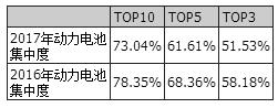 整體來(lái)看,國(guó)內(nèi)動(dòng)力電池行業(yè)集中度不高。2017年,國(guó)內(nèi)動(dòng)力電池行業(yè)TOP10集中度為73.04%,TOP5為61.61%,TOP3為51.53%,均略低于2016年水平。