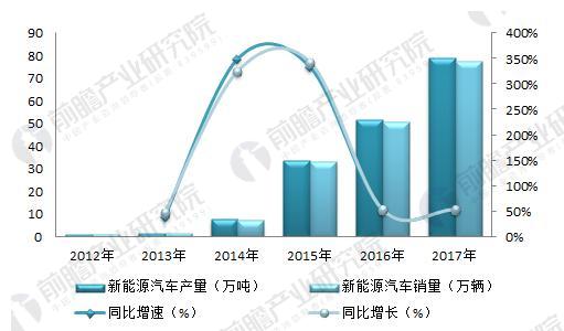 新能源汽車作為動(dòng)力鋰電池的重要應(yīng)用領(lǐng)域,其行業(yè)發(fā)展需求將對(duì)鋰電池行業(yè)有較大的影響。2012-2017年,我國(guó)新能源汽車產(chǎn)銷量上升趨勢(shì)明顯,以2015年為最大的產(chǎn)銷增速,在增量供應(yīng)增加的影響下,2016年后行業(yè)趨于平穩(wěn)上升發(fā)展。2017年我國(guó)新能源汽車的產(chǎn)銷規(guī)模分別為79.4萬(wàn)輛和77.7萬(wàn)輛,增速均超過(guò)50%。新能源汽車呈現(xiàn)供過(guò)于求的發(fā)展局面,但總體而言供求趨于平衡。