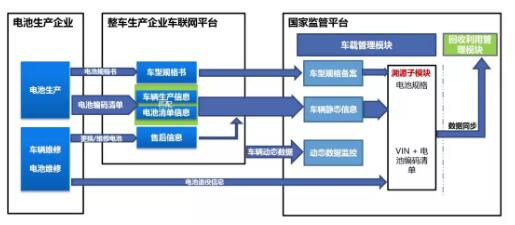 建設(shè)方案中指出,盡快建立并完善“新能源汽車國(guó)家監(jiān)測(cè)與動(dòng)力蓄電池回收利用溯源綜合管理平臺(tái)”,由汽車生產(chǎn)企業(yè)直接將動(dòng)力蓄電池編碼信息上傳至“車載管理模塊”(原國(guó)家監(jiān)管平臺(tái)升級(jí))?!豆芾磙k法》中明確要求,電池生產(chǎn)企業(yè)與汽車生產(chǎn)企業(yè)應(yīng)及時(shí)上傳動(dòng)力蓄電池編碼及新能源汽車相關(guān)信息,同時(shí)新能源汽車售后服務(wù)機(jī)構(gòu)、電池租賃等運(yùn)營(yíng)企業(yè)也應(yīng)盡快建立動(dòng)力蓄電池編碼與新能源汽車的動(dòng)態(tài)聯(lián)系。