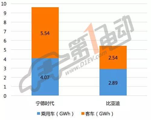 2017年寧德時(shí)代和比亞迪動(dòng)力電池供應(yīng)量對(duì)比(未包含專用車)