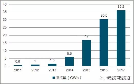 中國(guó)儲(chǔ)能網(wǎng)訊:伴隨新能源汽車的崛起,我國(guó)動(dòng)力電池行業(yè)自2014年進(jìn)入快速成長(zhǎng)階段,出貨量由2014年的3.7GWh增長(zhǎng)至2016年的30.5GWh,復(fù)合增長(zhǎng)率達(dá)288%。2017年受新能源補(bǔ)貼退坡影響,動(dòng)力電池出貨量增速下降至19%,全年出貨量為36.2GWh。