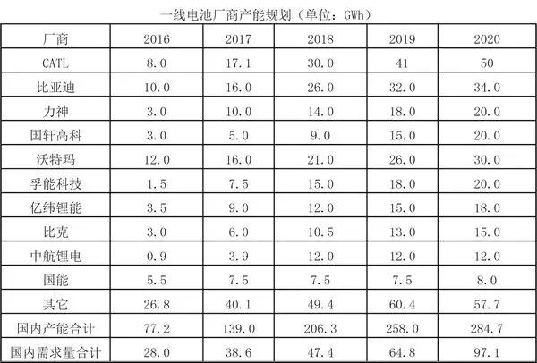 數(shù)據(jù)顯示,截至2017年底,國(guó)內(nèi)動(dòng)力電池總產(chǎn)能達(dá)到135GWh,有效產(chǎn)能110GWh,而全年動(dòng)力電池出貨量?jī)H為36.2GWh,平均產(chǎn)能利用率不足40%。以龍頭企業(yè)產(chǎn)能利用率可達(dá)80%估算,部分中小企業(yè)的產(chǎn)能利用率僅為10%,低端產(chǎn)能過(guò)剩明顯。未來(lái)兩年,一線電池廠商仍有新增產(chǎn)能投放,預(yù)計(jì)2018年、2020年動(dòng)力電池總產(chǎn)能將分別達(dá)到206GWh、285GWh,同期動(dòng)力電池需求量分別為47GWh、97GWh,技術(shù)落后、缺少穩(wěn)定整車客戶的小產(chǎn)能將被淘汰。