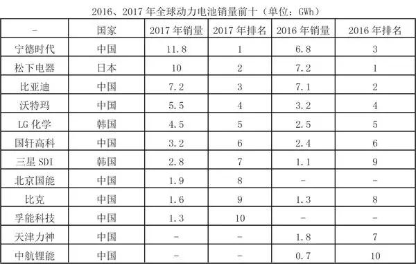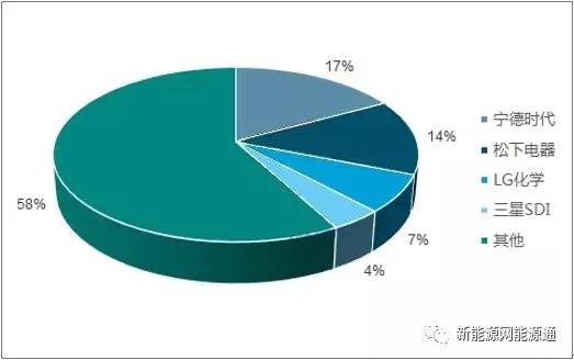 2017年全球動(dòng)力電池市場(chǎng)占有率