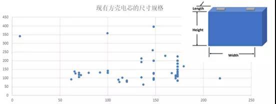 由于不同的電池設(shè)計(jì)水平不同,電芯企業(yè)在電芯的寬度、高度和厚度方面做出了一些調(diào)整,主要的調(diào)整方向是寬度和厚度,也有考慮在高度上做文章的,采用1.5倍或者2倍的厚度做較大規(guī)格的電芯。