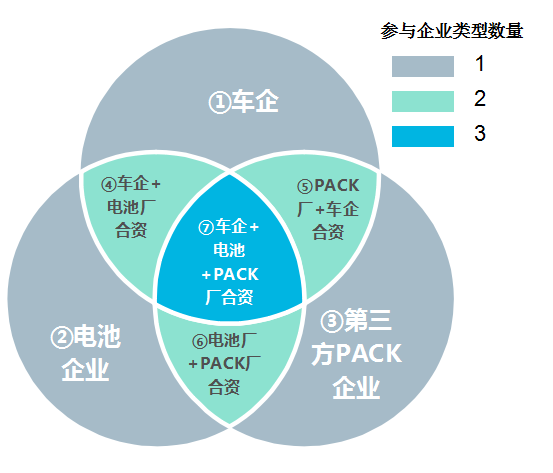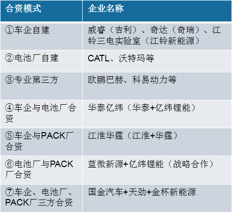 目前乘用車動力電池PACK市場的三種類型:車企、電池企業(yè)、第三方PACK企業(yè),通過各種方式合縱連橫,產生多種合作模式;旨在通過各種資本綁定,來促進技術融合,市場鎖定。