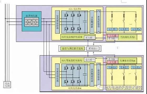 在儲能系統(tǒng)中,儲能電池在高壓上只與儲能變流器發(fā)生交互,變流器從交流電網(wǎng)取電,給電池組充電;或者電池組給變流器供電,電能通過變流器轉(zhuǎn)換成交流發(fā)送到交流電網(wǎng)上去。