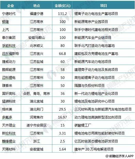 從2015年開始,隨著動(dòng)力型鋰離子電池需求迅猛增長(zhǎng),我國(guó)鋰離子電池產(chǎn)業(yè)結(jié)構(gòu)發(fā)生了顯著變化。2017年以寧德時(shí)代為代表的動(dòng)力電池生產(chǎn)企業(yè)積極布局國(guó)內(nèi)相關(guān)項(xiàng)目的建設(shè),據(jù)前瞻產(chǎn)業(yè)研究院發(fā)布的《2018-2023年中國(guó)鋰電池行業(yè)市場(chǎng)需求預(yù)測(cè)與投資戰(zhàn)略規(guī)劃分析報(bào)告》統(tǒng)計(jì)資料顯示,2017年代表性企業(yè)動(dòng)力電池共布局18個(gè)相關(guān)項(xiàng)目的建設(shè),項(xiàng)目共計(jì)投資達(dá)931億元,可見國(guó)內(nèi)在國(guó)家政策的推動(dòng)及新能源汽車發(fā)展的需求下,國(guó)內(nèi)企業(yè)加速在動(dòng)力鋰電池領(lǐng)域的競(jìng)爭(zhēng)。