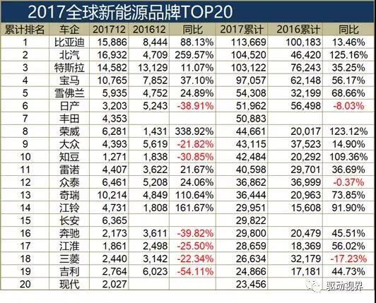 北汽新能源EC系列曾以月銷15,719輛的成績(jī)刷新了單一新能源車型月銷量紀(jì)錄,2017年北汽新能源汽車總銷量達(dá)到104,520輛,豪取全球新能源車企銷量亞軍,并且同比增速高達(dá)125.16%,位列2017全球新能源品牌TOP20第一。