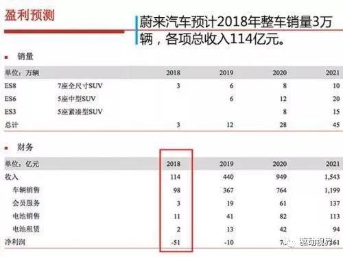 此前,網(wǎng)上爆料,2018年蔚來(lái)汽車收入預(yù)計(jì)為114億元,預(yù)測(cè)稱今年虧損達(dá)51億元,并且直到2020年才開始盈利。