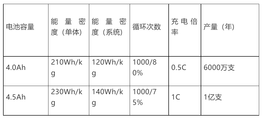 天津力神的前述高管對(duì)“大出行下半場”介紹,目前蘇州力神推出了4.0Ah、4.5Ah兩款21700電池產(chǎn)品,以4.5Ah產(chǎn)品為主。這兩款電池的具體性能等指標(biāo)如下表: