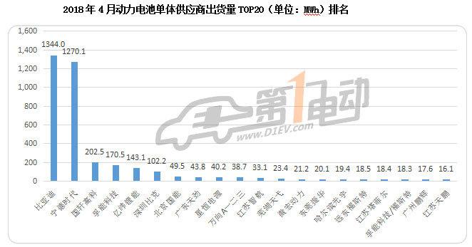 根據(jù)第一電動研究院的統(tǒng)計測算,2018年4月國內(nèi)新能源汽車市場動力電池裝機(jī)量為3.756GWh,同比增長261.56%,其中比亞迪以1.34GWh的裝機(jī)量登頂,占比35%,這是比亞迪的月裝機(jī)量在時隔一年后再次超過CATL排在首位,寧德時代以1.27GWh的裝機(jī)量排在第二位,占比34%,今年以來獨占一半市場份額的狀況被打破。