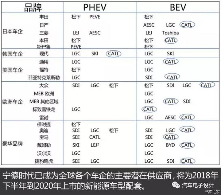 隨著補貼持續(xù)下降,CATL與國外的松下、三星SDI和LG化學在PHEV和EV兩個方面作為競爭對手比拼產(chǎn)品、價格和配套能力。