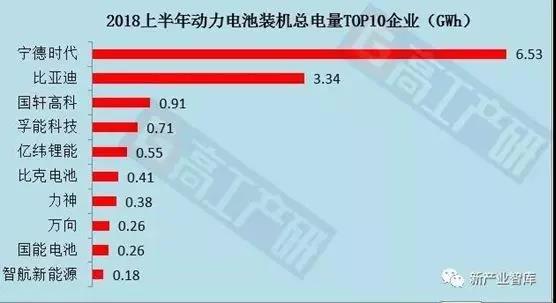 高工產(chǎn)業(yè)研究院(GGII)發(fā)布數(shù)據(jù)顯示,2018年上半年動力電池裝機總電量約15.54GWh,同比增長168%。其中,裝機總電量TOP10企業(yè)合計達13.53GWh,占整體的87%,較去年同期占比上升近12個百分點,行業(yè)集中度日漸凸顯。