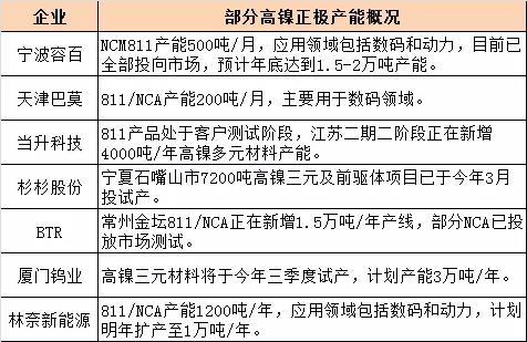 從需求側(cè)情況看,國(guó)內(nèi)部分高鎳正極材料企業(yè)已經(jīng)逐步獲得商用車、乘用車企的認(rèn)證,市場(chǎng)應(yīng)用開始加速。今年上半年高鎳三元材料NCM811/NCA已呈現(xiàn)出供不應(yīng)求的狀態(tài)。