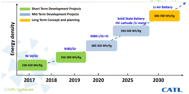 寧德時(shí)代能量密度發(fā)展路線圖: (寧德時(shí)代自2017年始能量密度持續(xù)攀升)