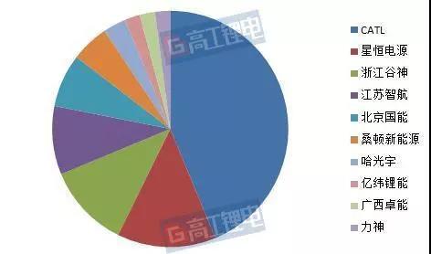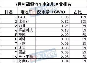 高工產(chǎn)研鋰電研究所(GGII)統(tǒng)計數(shù)據(jù)顯示,2018年7月,寧德時代與比亞迪兩家頭部企業(yè)依然牢牢占據(jù)新能源汽車電池配套量前兩位,合計配電量2.18GWh,占總比66%。二三線競爭格局由于尚未形成,排位爭奪仍然激烈,星恒電源以月配電量0.06GWh排名第十。