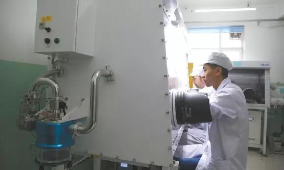 由于氧含量對產品有嚴重的影響,因此燒結的過程需要對氧含量進行嚴密的監(jiān)控,據(jù)介紹,為了讓生產環(huán)節(jié)更加環(huán)保,公司將尾氣處理系統(tǒng)進行升級改造,燃燒后的尾氣被統(tǒng)一收集進行燃燒,同時利用過的氮氣會重新凈化進行循環(huán)利用?!罢龢O材料的制作過程需要隔絕水份,因此生產過程為全線封閉式,會通過發(fā)送罐打到另一個車間,并且整個車間有自動報警系統(tǒng),如果生產線上任何一個環(huán)節(jié)出現(xiàn)問題會第一時間啟動報警裝置?!遍Z勇說。