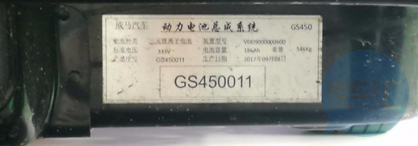 此前網(wǎng)友在車展現(xiàn)場拍到谷神電池包銘牌字樣為“GS450011”字樣: