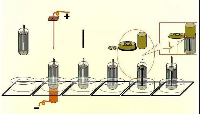 組裝后的電池,被給予一定的電流,使電池正負(fù)極活性物質(zhì)被激發(fā),最后使電池具有放電能力的電化學(xué)過(guò)程稱為化成,電池只有經(jīng)過(guò)化成后才能作為電源使用。
