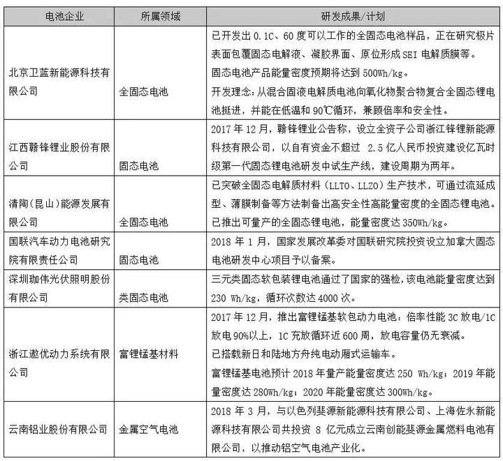 企業(yè)下一代動(dòng)力電池研發(fā)現(xiàn)狀(來源:企業(yè)官網(wǎng)、媒體報(bào)道)