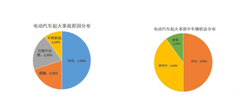 以上半年的事故數(shù)據(jù)為基礎(chǔ),從起火原因來看,因充電導(dǎo)致的起火事故共5起,占比50%之多,成為起火事故的第一誘因;其次是碰撞起火和行駛中自燃各兩起,各占20%。從車輛狀態(tài)來看,靜置和充電為一類,電池在靜置和使用中都有可能發(fā)生起火事故。