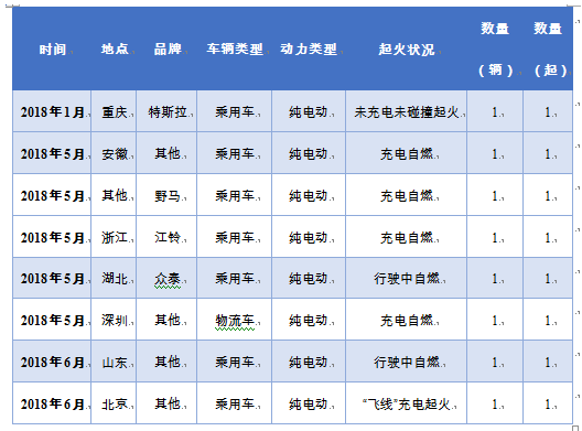據(jù)公開資料顯示,2018年上半年(1-6月)新能源電池車國內(nèi)共發(fā)生8次起火事故,與2017年基本持平,其中5月之后的事故占7起,說明新能源汽車起火主要集中在夏季。從成型及品牌來看,特斯拉、江鈴等國內(nèi)外純電動汽車均榜上有名。然而,據(jù)最新資料顯示,進(jìn)入8月和9月以來,公開起火事件已經(jīng)多達(dá)12起,這一數(shù)字遠(yuǎn)高于2016、2017年一整年的公開起火數(shù)量。由于電動汽車起火的原因主要是電池過熱,熱量無法及時散出而造成的電池高溫起火,因而在高溫、暴雨等天氣頻繁地的夏季多發(fā)也在情理之中。