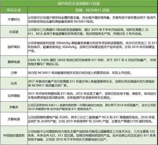 國內(nèi)電芯企業(yè)高鎳 811進(jìn)展