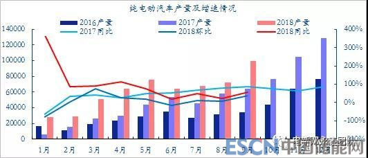 今年1-9月,新能源汽車產(chǎn)量累計達73.5萬輛,銷量累計達72.1萬輛,較17年1-9月的42.4萬輛累計產(chǎn)量與39.8萬輛累計銷量,分別增加了31.1萬輛和32.3萬輛。同比增速分別為73%和81.1%,增長態(tài)勢很好,其中2018年1-9月份的72.1萬銷量接近2017年全年的銷量77.7萬輛。