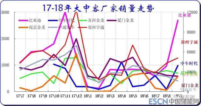 由于新能源補(bǔ)貼的促進(jìn),15-16年大中客市場(chǎng)賺錢很多,但為拿補(bǔ)貼的不能有轉(zhuǎn)移量,因此高補(bǔ)貼帶來的17年壓力太。隨著18年電動(dòng)車政策的逐步明朗。1-5月享受高補(bǔ)貼下的主力企業(yè)走勢(shì)很好。6-8月企業(yè)走勢(shì)放緩。
