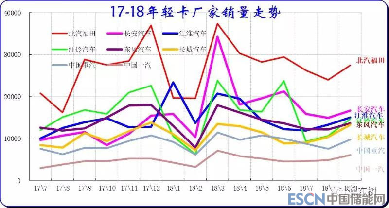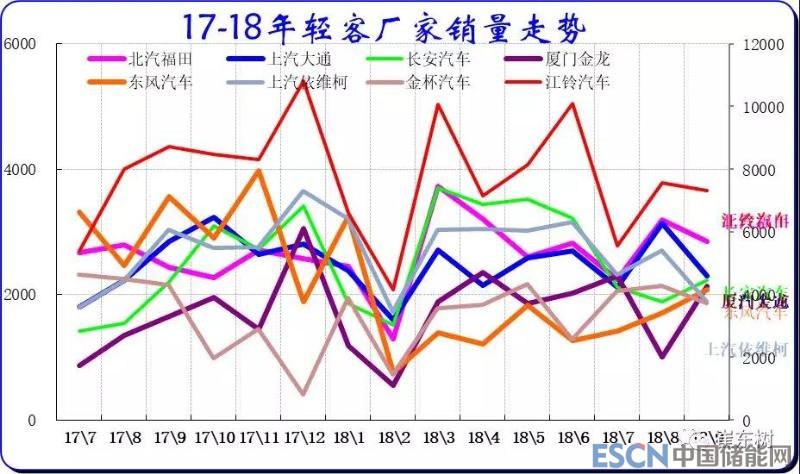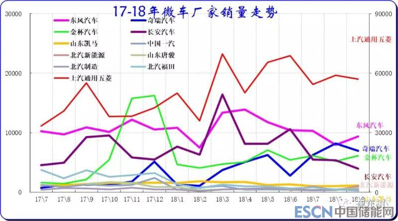 18年的9月的五菱走勢(shì)平穩(wěn)較強(qiáng),而長安逐級(jí)回落,其他企業(yè)走勢(shì)壓力也較大,但奇瑞等電動(dòng)微客企業(yè)表現(xiàn)較好。