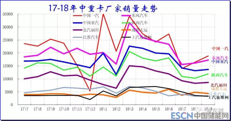 18年3-6月的中重卡基本都是同比17年高增長的狀態(tài),主力車企相對(duì)較好。今年7-9月的主力走勢(shì)分化,一汽9月走勢(shì)超強(qiáng),重汽走勢(shì)較穩(wěn)。