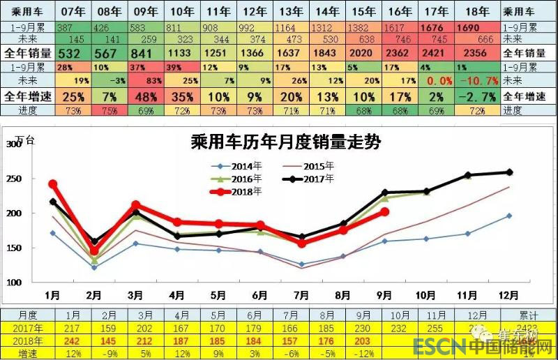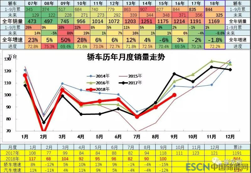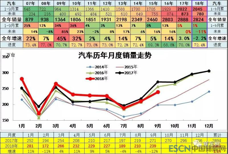 中國儲(chǔ)能網(wǎng)訊:2018年汽車市場(chǎng)總體走勢(shì)壓力較大,各細(xì)分板塊在9月表現(xiàn)都不是很強(qiáng),隨著高基數(shù)的壓力凸顯,4季度的車市增長也有一定壓力。