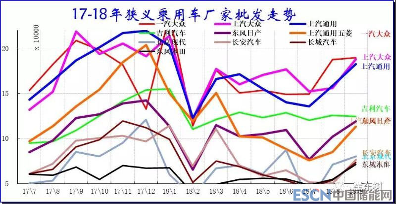 乘用車主力廠家成為三大陣營,前三甲在18萬左右,中間在12萬水平,后面的在月銷7萬臺(tái)左右。