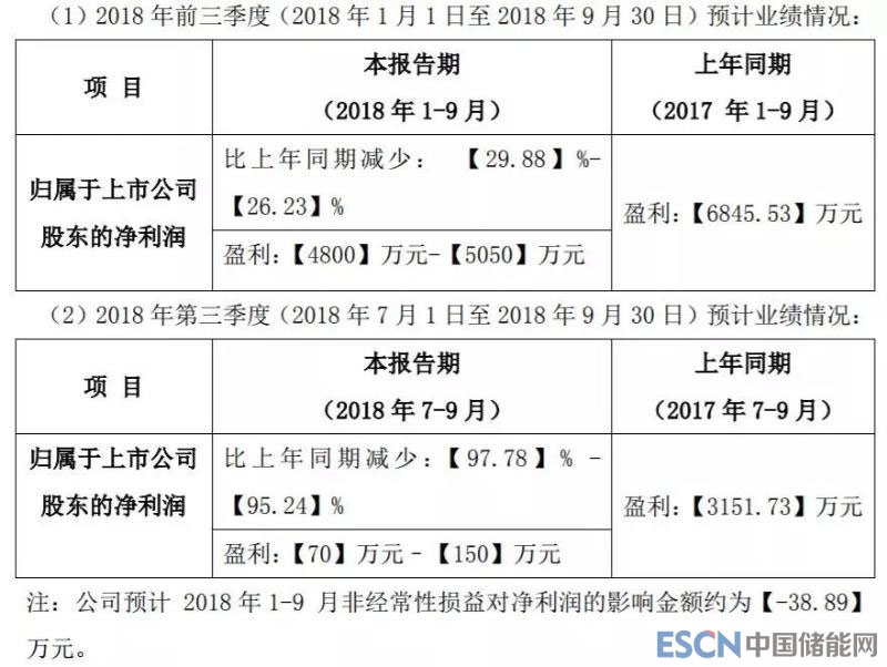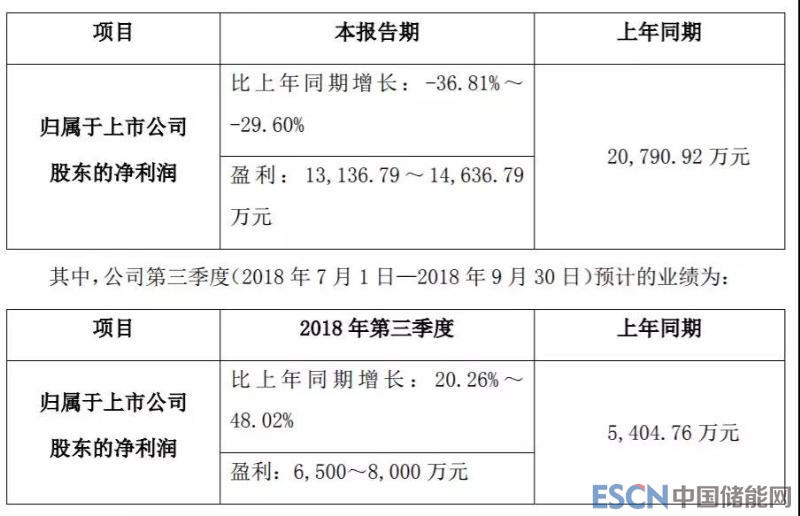 10月13日,蘇州中來光伏新材股份有限公司(以下簡稱“中來股份”)發(fā)布2018年前三季度業(yè)績預告。公告顯示,2018年1~9月公司預計歸屬于上市公司股東的凈利潤為1.31~1.46億元,較2017年同期的2.08億元同比下降29.60%~36.81%。其中,預計第三季度凈利潤6500~8000萬元,較2017年同期的5404.76萬元同比增長20.26%~ 48.02%。