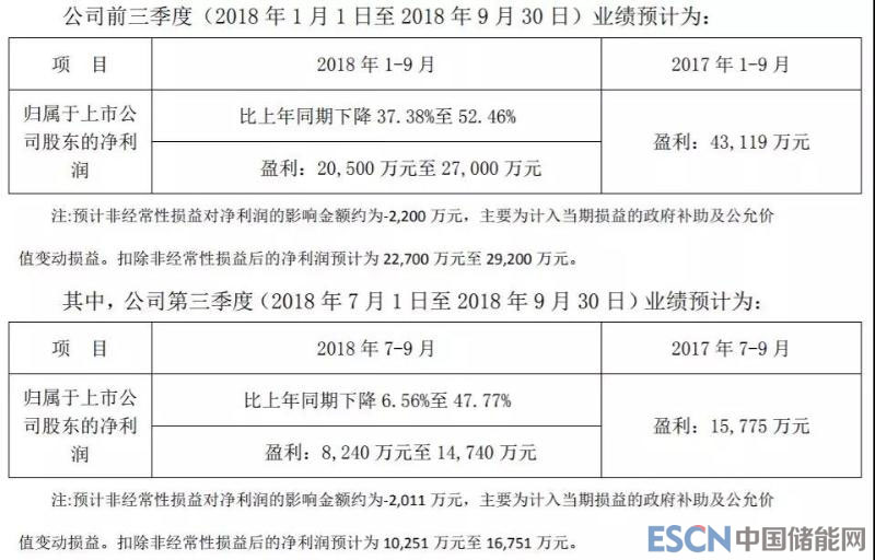 10月12日,陽光電源股份有限公司(以下簡稱“陽光電源”)發(fā)布2018年前三季度業(yè)績預告。報告顯示,2018年1~9月公司預計歸屬于上市公司股東的凈利潤為6.0~6.7億元,較2017年同期的7.5億元同比下降10%~20%。其中,2018年1-9月非經(jīng)常性損益主要系募集資金利息收入及政府補助,預計對凈利潤影響約7900萬元。
