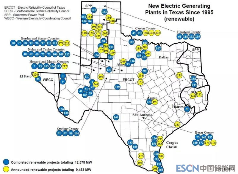 但2017年德州又考慮要引入網(wǎng)損分量了,為什么呢?也簡單,電廠建對位置了,風(fēng)場離得遠(yuǎn)啊(下圖)。風(fēng)場建的越多,沒有網(wǎng)損分量的缺點越體現(xiàn)出來了,輔助服務(wù)成本高、定價效率低、投資偏向,只能根據(jù)實際情況再調(diào)整市場規(guī)則。