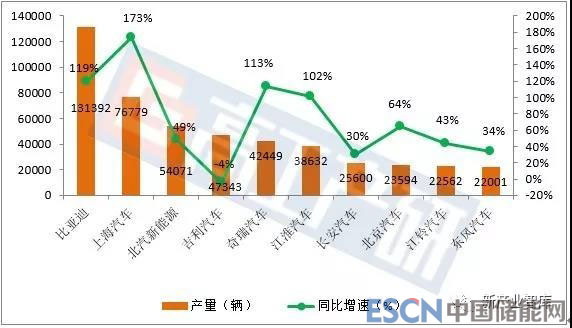 2018年1-9月我國新能源汽車產(chǎn)量TOP10車企