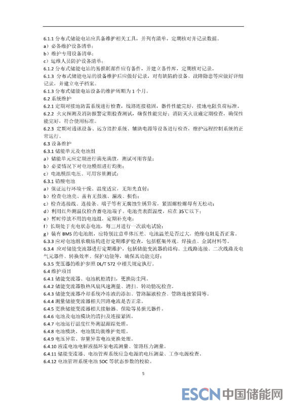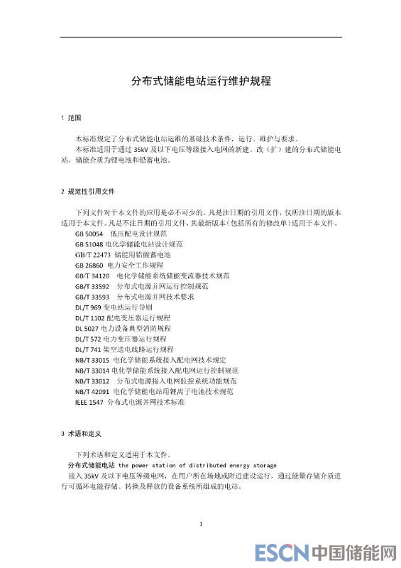 近日中電聯(lián)標(biāo)準(zhǔn)化管理中心發(fā)布關(guān)于征求《分布式儲(chǔ)能電站運(yùn)行維護(hù)規(guī)程》標(biāo)準(zhǔn)意見(jiàn)的函,“布局廣、數(shù)量多、容量小”已成為儲(chǔ)能的重要發(fā)展趨勢(shì)之一,且逐漸凸顯規(guī)模效應(yīng),分布式儲(chǔ)能電站必需建立運(yùn)行維護(hù)的標(biāo)準(zhǔn),以保證其安全穩(wěn)定運(yùn)行,但目前暫無(wú)關(guān)于分布式儲(chǔ)能電站運(yùn)行維護(hù)的國(guó)家或行業(yè)標(biāo)準(zhǔn)。由國(guó)網(wǎng)浙江省電力公司嘉興供電公司等單位起草該標(biāo)準(zhǔn),桑尼能源、漢能等協(xié)助核實(shí)部分條款和技術(shù)指標(biāo)。標(biāo)準(zhǔn)規(guī)定了分布式儲(chǔ)能電站運(yùn)維的基礎(chǔ)技術(shù)條件,運(yùn)行、維護(hù)與要求,適用于通過(guò) 35kV 及以下電壓等級(jí)接入電網(wǎng)的新建、改(擴(kuò))建的分布式儲(chǔ)能電站,儲(chǔ)能介質(zhì)為鋰電池和鉛蓄電池。