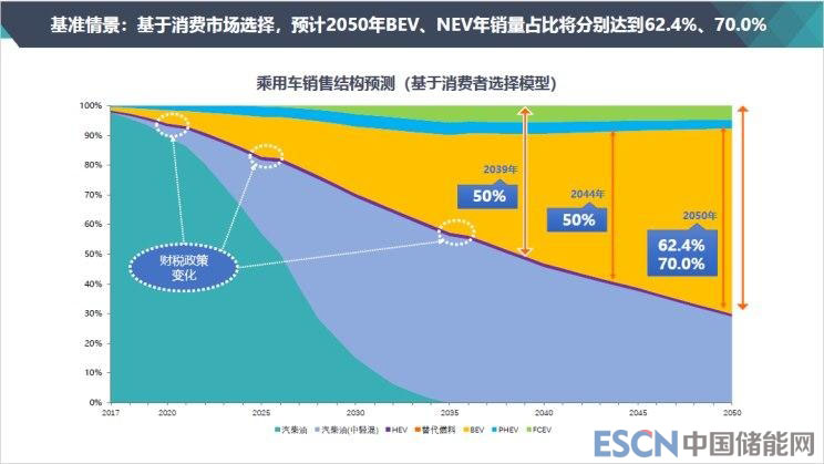 中國儲能網(wǎng)訊:“基于消費市場選擇,預(yù)計2050年純電動汽車(BEV)、新能源汽車(NEV)年銷量占比將分別達到62.4%和70%。”10月16日,在2018節(jié)能與新能源汽車發(fā)展趨勢研討會暨研究成果發(fā)布會上,中國汽車技術(shù)研究中心首席專家趙冬昶表示,隨著制造成本和便利性在內(nèi)的綜合成本全面領(lǐng)先傳統(tǒng)燃油汽車(ICEV),新能源汽車將在2050年成為市場的絕對主流。