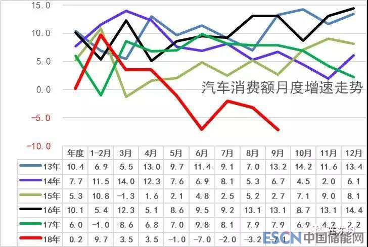 中國(guó)儲(chǔ)能網(wǎng)訊:18年1-9月是車市逐步走弱的階段,面對(duì)17年底2.5%購(gòu)置稅優(yōu)惠退出的壓力下,18年1-2月汽車市場(chǎng)消費(fèi)表現(xiàn)仍較好,但3-9月的高基數(shù)增長(zhǎng)壓力較大,5-6月雖有降稅預(yù)期的影響,同時(shí)面對(duì)樓市超級(jí)火爆,車市5月消費(fèi)增長(zhǎng)-1%,6月進(jìn)口車等待觀望,導(dǎo)致增長(zhǎng)-7%。7-8月觀望群體購(gòu)車,但車市零售仍是-2%和-3%。9月車市零售額負(fù)增長(zhǎng)達(dá)-7%。車市零售近期的負(fù)增長(zhǎng),中西部樓市惡炒對(duì)車市影響較明顯。
