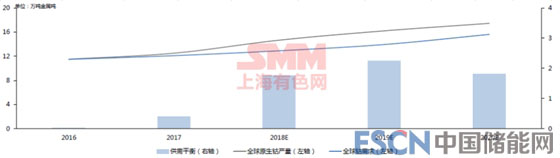 SMM預(yù)計(jì)2018年全球鈷原料供應(yīng)或超14.5萬(wàn)噸,同比增長(zhǎng)12%;預(yù)計(jì)2016年至2020年全球鈷供應(yīng)年復(fù)合增長(zhǎng)率約9.5%。