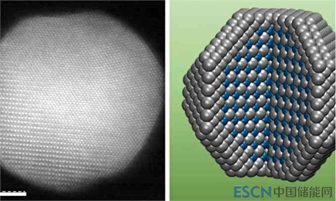 這些粒子有一個純鉑外殼,圍繞著一個由鉑和鈷原子交替層構(gòu)成的核心。