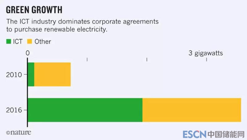 2011年,F(xiàn)acebook承諾100%使用可再生能源。 谷歌和蘋果緊隨其后于2012年做出相應(yīng)承諾。截至2017年,近20家互聯(lián)網(wǎng)公司也做了同樣的事情。(然而,百度,騰訊和阿里巴巴等中國互聯(lián)網(wǎng)巨頭并沒有跟隨。)在2010年前,IT公司對能源公司的可再生能源購買協(xié)議的貢獻(xiàn)微?。坏?015年,他們占這些協(xié)議的數(shù)量達(dá)到了一半以上。谷歌是全球最大的可再生能源企業(yè)采購商。