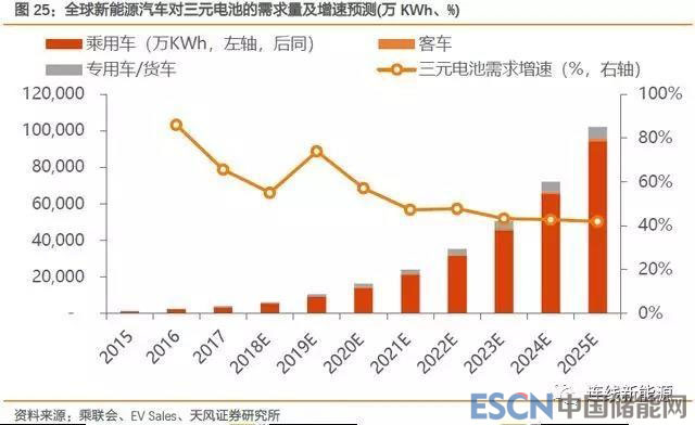 圖3.天風(fēng)證券全球三元電池需求量預(yù)測(cè)